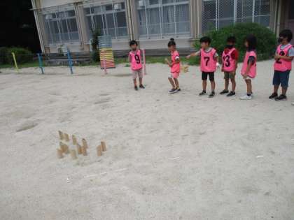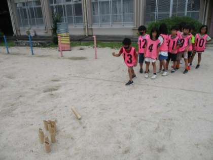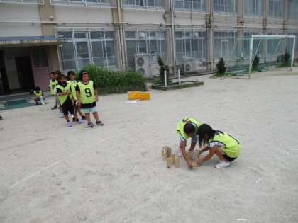 ルールを知っている子たちに教えてもらいながら、2チームに分かれて対戦しました。