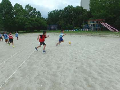 次はサッカー!汗だくでしたが,みんな楽しそうでした。