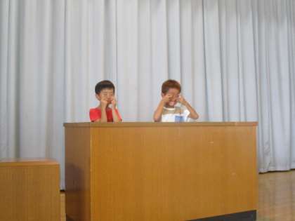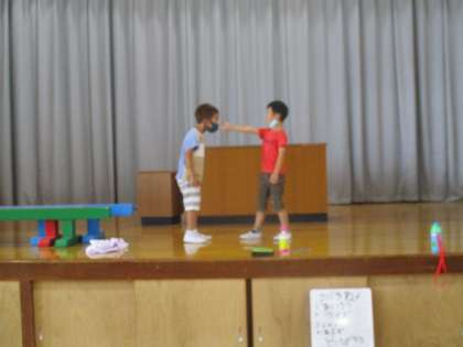 いいとこ・がんばりみつけが目標の50個たまったのでお楽しみ会をしました。クイズ大会やお笑いの披露やドッジボールをしました。