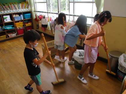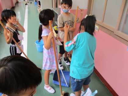 そうじの仕方をもう一度確認をし、少しレベルアップしたそうじで2学期をスタートしました。よくがんばっていました。