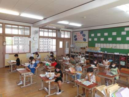 新しい教科書を配ると、興味津々にページをめくっていました。