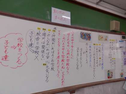 でも,学習を通して「学校は子ども達がつくっていくもの」という意見が子ども達から出てきて,これからの学校をみんなでつくっていこうという意欲をもつことが出来ました。