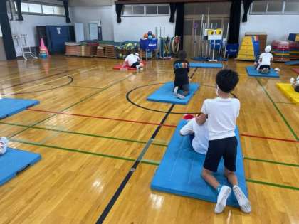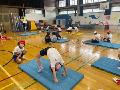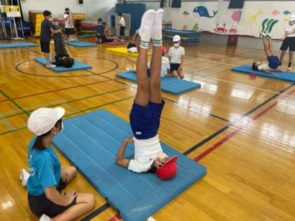 ペアで体操をしっかりしたあとは、組体操の一人技に挑戦してみました。