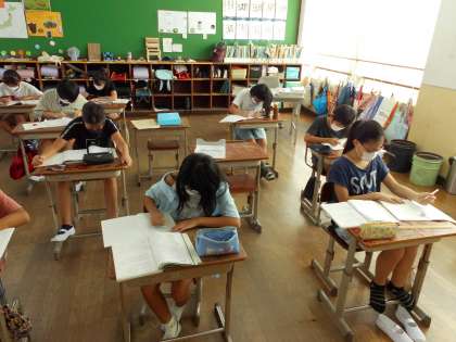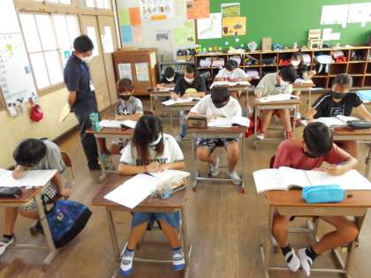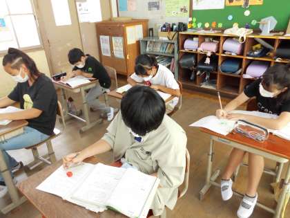 算数の時間には中学校の先生も来てくださっています。わからないところをそのままにせず,「教えてください。」と尋ね,わかるまで一生懸命に取り組んでいました。