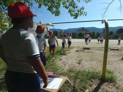 この日は,ねらい2の時間に,自分に合った助走の距離やスピードを考えました。「もう少し〜した方が…」「○○がよかった!」と友達同士で声かけをしている姿もありました!