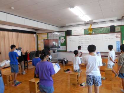 音楽の時間には,「星の世界」の曲で3部のパートに分かれて合唱に取り組んでいます。