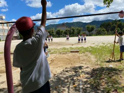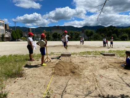 助走や踏み切り,空中での姿勢がどんどんよくなってきました。また,それらがよくなることで記録も少しずつ伸びてきました。この日は「3mを越えた!」という子が出てきました。すごい!