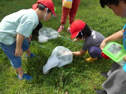 捕まえた虫を興味津々で観察していた子どもたちでした。