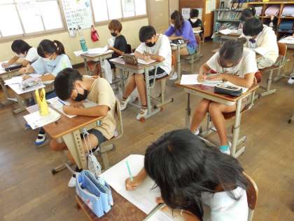 「円の面積」の学習のまとめに取り組みました。円の面積を求める公式をどのように使ったらいいのか,ということを何度も練習しながら,コツコツと問題に取り組んでいました。