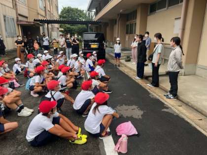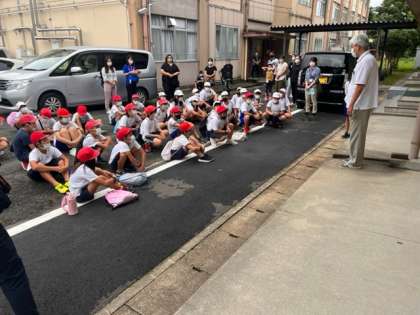 感染症や台風などたくさんの不安がある中、石田小学校4年生35人全員が無事に揃って出発式に参加できました!