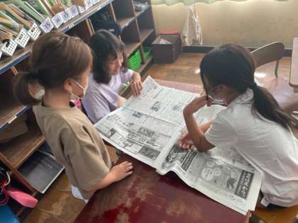 新聞を実際に手に取って、新聞にはどのようなことが書かれているのかを見つけていきました。