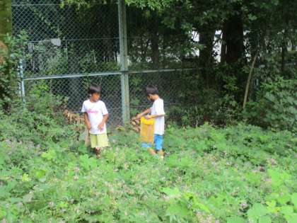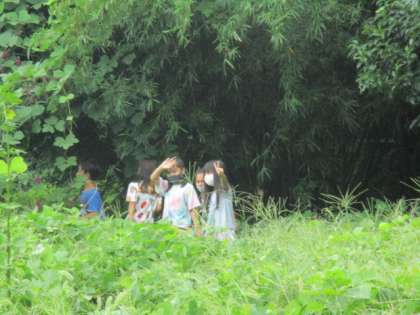 運動場やビオトープで昆虫などの小さな生き物を探して観察をしています。