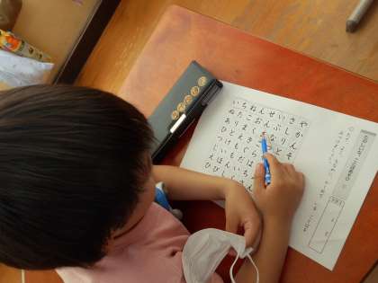 見つけた言葉を発表する中で、「ホンマや。」「それ、僕も見つけてた。」と隠れている言葉に驚いたり、共感したりしていました。