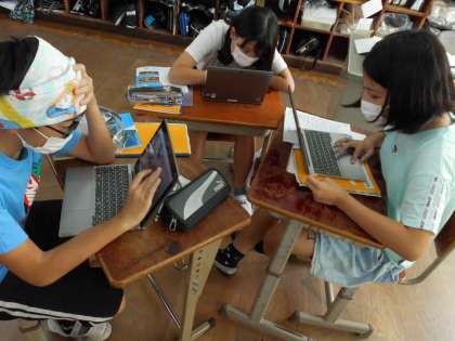社会の学習で「平治物語絵巻」のある場面の資料を見て,その資料から分かったことをもとにグループでタイトルを考えました。なぜ,そのタイトルをつけようとしたのか,資料から分かったことをもとに話し合いました。