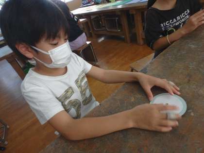 紙が回る仕組みを使って,どのようなものを思いついたかを話し合い,自分だけのランドを想像しながらアイデアスケッチをしました。