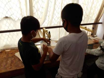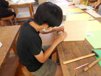 切った板をどのように合わせればいいのか,それぞれよく考えて製作に取り組んでいます。