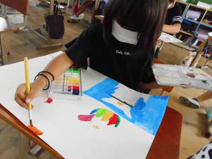 図画工作科の学習では、お話の絵に取り組んでいます。想像を膨らませながら、素敵な絵が完成するといいですね♪