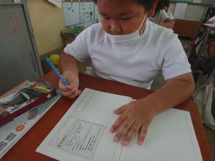 ちいちゃんのかげおくりの学習のまとめをしました。これまでの学習をふり返って,自分の感想を書くことができました。