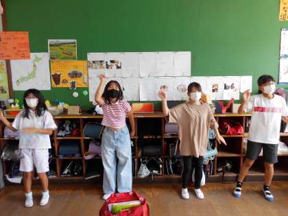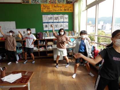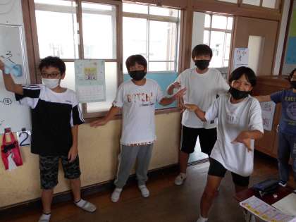 運動会で5,6年生で取り組む学年演技の練習を始めています。まずは,ダンスに慣れるために教室で何度も映像を見たり,休み時間に少し踊ったりしています。