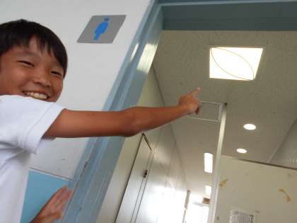 なんと,トイレの天井の模様にその図形を見つけたようです。