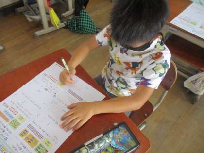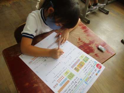 「図をつかって考えよう」と「しきと計算」のテストをしました。