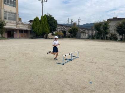 「トン1・2・3」のリズムでハードルをとべるよう、練習しました。