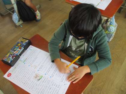 国語の多くの答えは文章の中にあることを伝えています。子どもたちは何度も文章を読んで答えを探していました。。