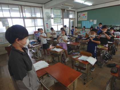 「あの雲のように」の2の旋律をリコーダーで演奏しました。学習の後半で1と2の旋律を重ねてみると,リコーダーの音色が美しく響いていました。