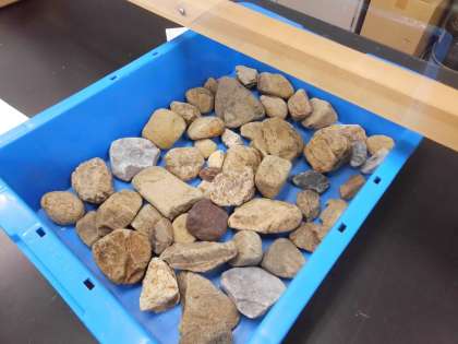 「発見!こんなところに石灰岩」のグループの学習では,身の回りにたくさんの石灰岩が使われていることを知り,まずはその見分け方を調べました。