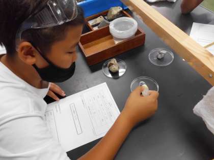 石灰岩に塩酸をかけると「シュワシュワ」と泡が出ました。
