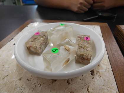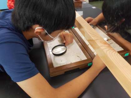 石灰岩には二酸化炭素が含まれていることを知った後,虫メガネでよく観察してみると,貝殻やサンゴなどが含まれていることが分かりました。