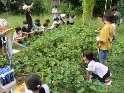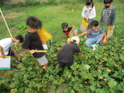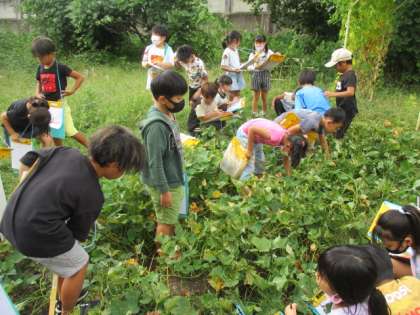 収穫前の大きくなったサツマイモの様子を観察しにいきました。