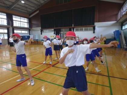 動きがずいぶんそろってきました!この日は,大きく・キレのある踊りを意識しました!