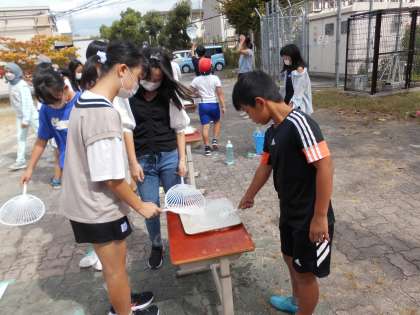 中間休みに,くすのき学級が準備してくれたシャボン玉屋さんで遊ばせてもらいました。