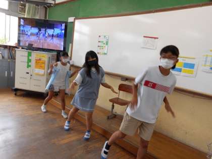 運動会で取り組む「全校ダンス」の練習をしました。係の人たちが前に出て、わかりやすく踊ってくれました。全校のみんなで踊るのがとても楽しみですね!