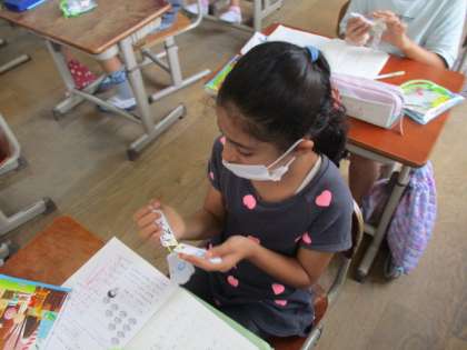 5の段は5ずつ答えが増える、2の段は2ずつ答えが増えるということに気づいた子どもたち。