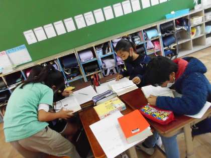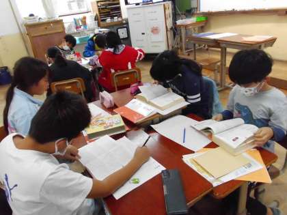 国語の「慣用句」の学習では、教科書に書かれている慣用句の意味を国語辞典を使い、調べていきました。班で協力しながら、進めていきました。
