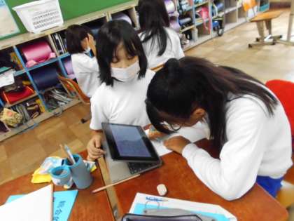 総合的な学習の時間では、今まで調べてきた「山科川」の魅力を守っていくために自分たちにできることを考えています。「川を守るためのポスターを作りたい!」「川をきれいにするための呼びかけの動画を作りたい!」など、自分たちで選んだ方法で学んだことを発信していきます。今日は、その準備をしました。