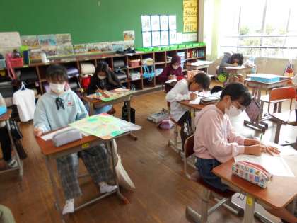 自然と,「〇〇さんの背景がきれい」「〇〇の作品すごい!」と言った声が聞こえてきて,楽しんで作品を見あっている様子がとても良かったです。