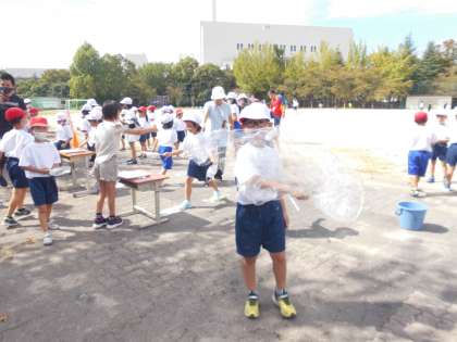 うちわの骨を使って、いろいろなシャボン玉を作って楽しみました。