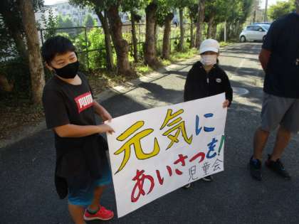 さわやかな秋晴れのもと、元気よくあいさつすることで、気持ちよく一日のスタートを切りましょう!
