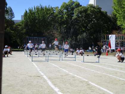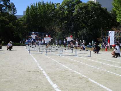 ハードル走では、リズムよくとぶことを意識して走り切れていました。