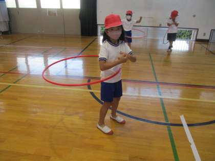 フラフープを使った楽しいあそびがどんどんでてきました。