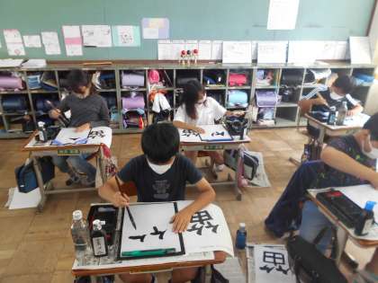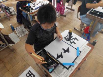 上の部分と下の部分との組み立て方に気を付けながら、「笛」という字を書きました。竹かんむりのはらいや中心を意識しながらそれぞれが一生懸命書くことができました。