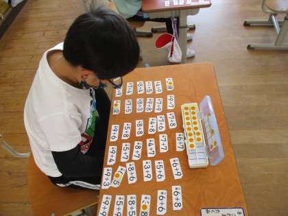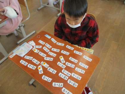たしざんのカードを使ってたしざんの練習をたくさんしました。