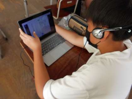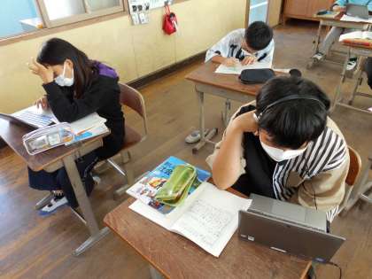 運動会への取組を通して、一人一人が感じたことを短歌に表し、ロイロノートを使ってみんなで共有しました。とても真剣に友達の思いを感じ取っていました。