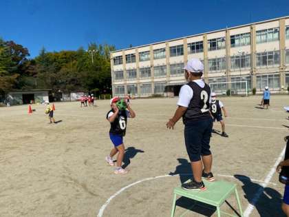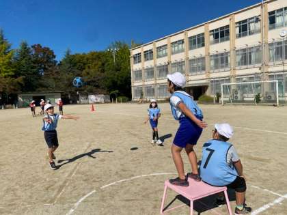最後はシュートをします。守っている人がいる時には,どんなシュートがいいのかを考えながら取り組みました。