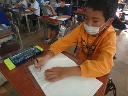 スーパーマーケットの工夫を簡潔にまとめました。社会科での学習がしっかりと身についていたようで,どの子もすらすらと書くことができていました。