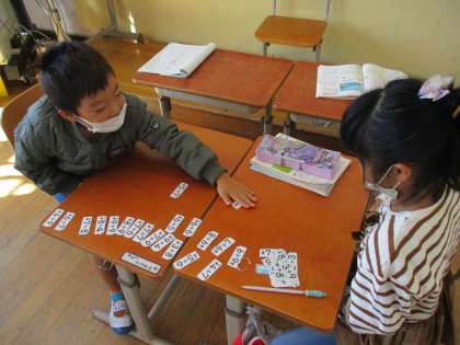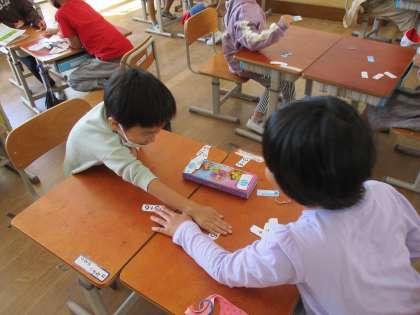 カードゲームをしてたし算の練習をしました。