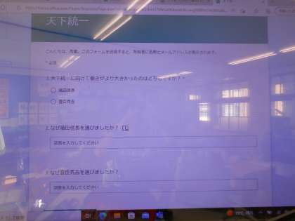 「織田信長」「豊臣秀吉」が世の中を治めるためにどのようなことをおこなったのかをグループで交流し,それぞれの武将について知った子ども達は,どちらの武将がより天下統一への働きが大きかったのかアンケートを取って考えを聞いてみました。